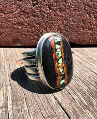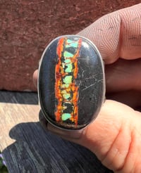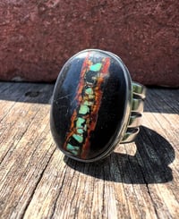 WL&A Handmade Heavy Ingot Cuatro Black Jack Turquoise Ring - Size 11.5