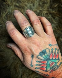 Casted & Hand wrought heavy Ingot from repurposed 1890s Sterling Silver, cold chiseled, stamped & filed + layered with Thunderbirds. Built the old style, made to last generations!