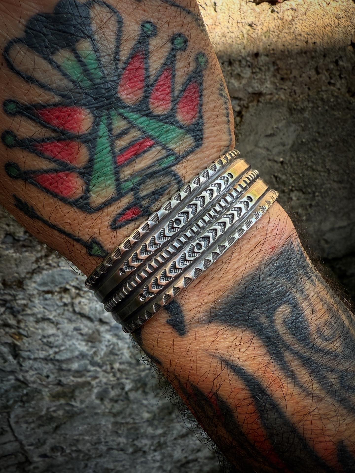 Handmade Ingot Cuff (3/4 width) forged from repurposed 1890s 925 Sterling Silver with heavy old style stamp work . Timeless Classic! Built to last generations.