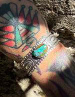 WL&A Handmade Ingot Old Style Repoussé Blue Royston Ribbon Cuff - Size 7" to 7.5" Wrist