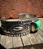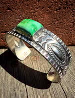 WL&A Handmade Ingot Old Style Repoussé Emerald Desert Turquoise Cuff - Size 7" to 7.5" Wrist