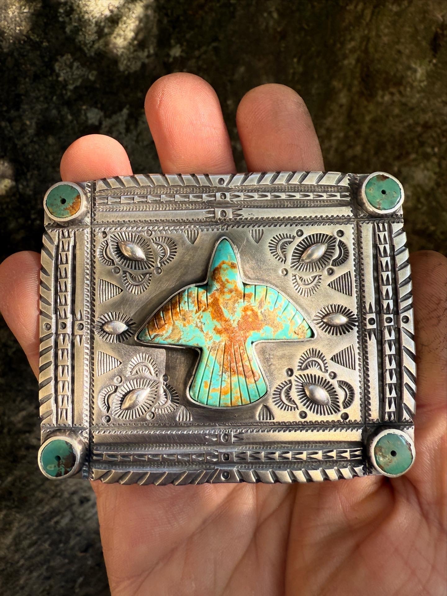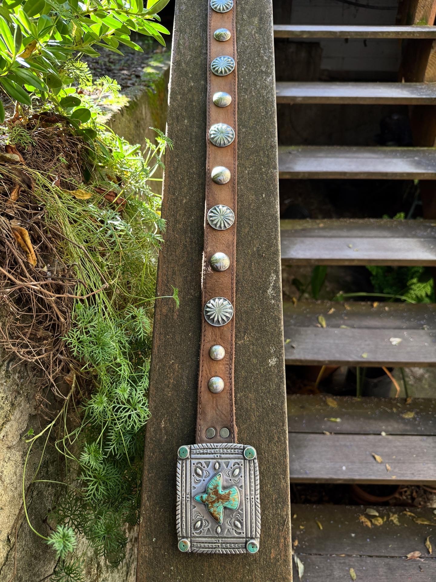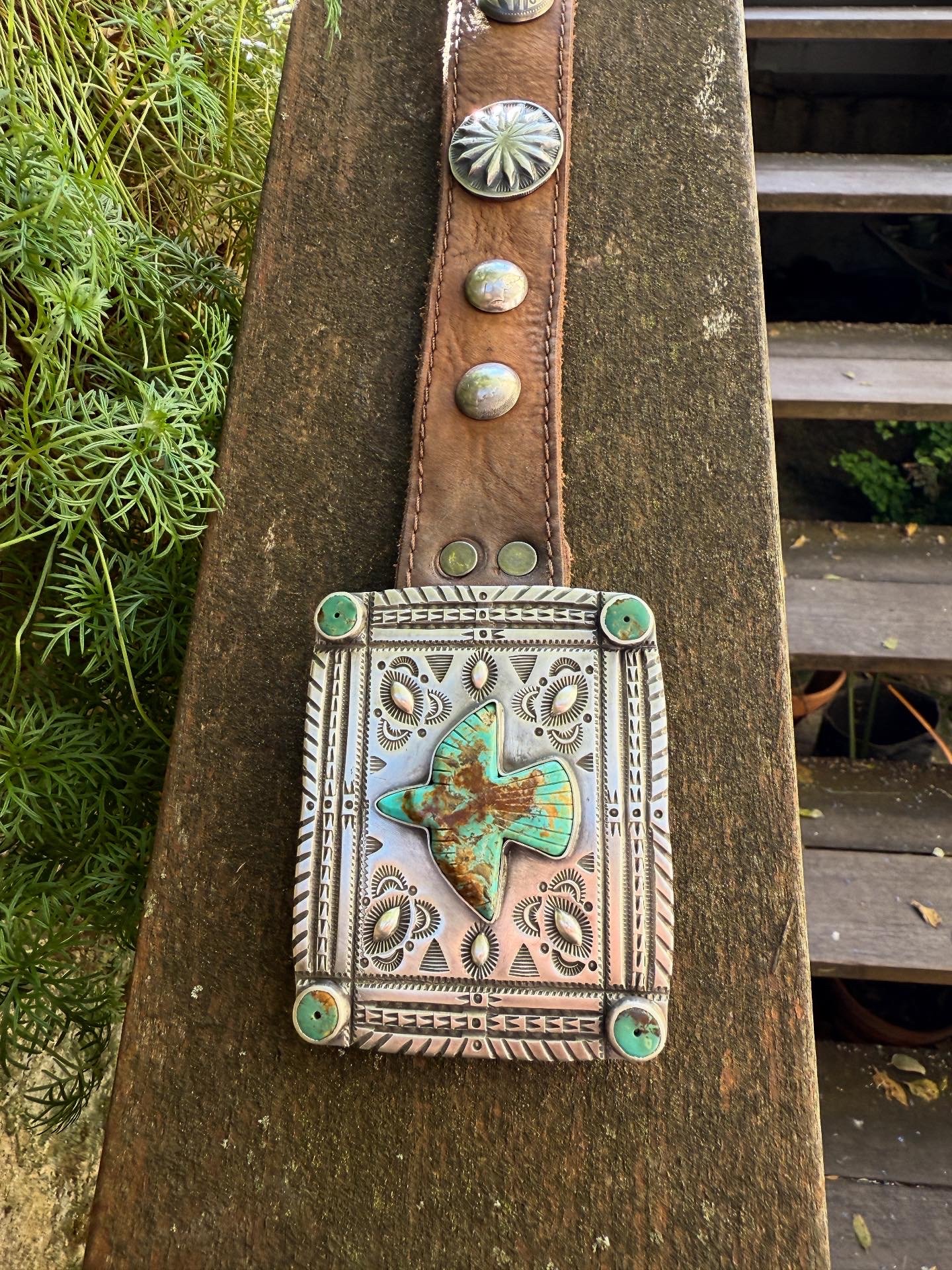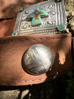 WL&A Handmade Old Style Heavy Ingot X Silver Coin Royston Turquoise Thunderbird Concho Belt